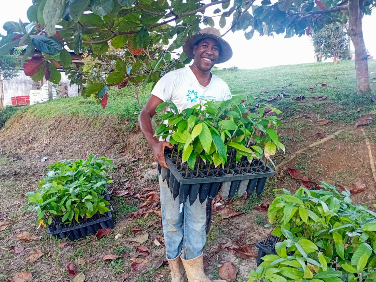 Restauração ecológica e produtiva - As mudas doadas se somam pontualmente às ações que já vêm sendo implementadas pela Tabôa para fomentar a restauração ecológica e produtiva no Sul da Bahia. No projeto, agricultoras e agricultores familiares têm acesso a crédito para investir na implantação de Sistemas Agroflorestais (SAFs), com espécies produtivas e nativas, a fim de promover a restauração produtiva e ecológica de áreas degradadas. Além disso, as/os participantes passam a contar com acompanhamento técnico para fortalecer o manejo sustentável ao longo de três anos.