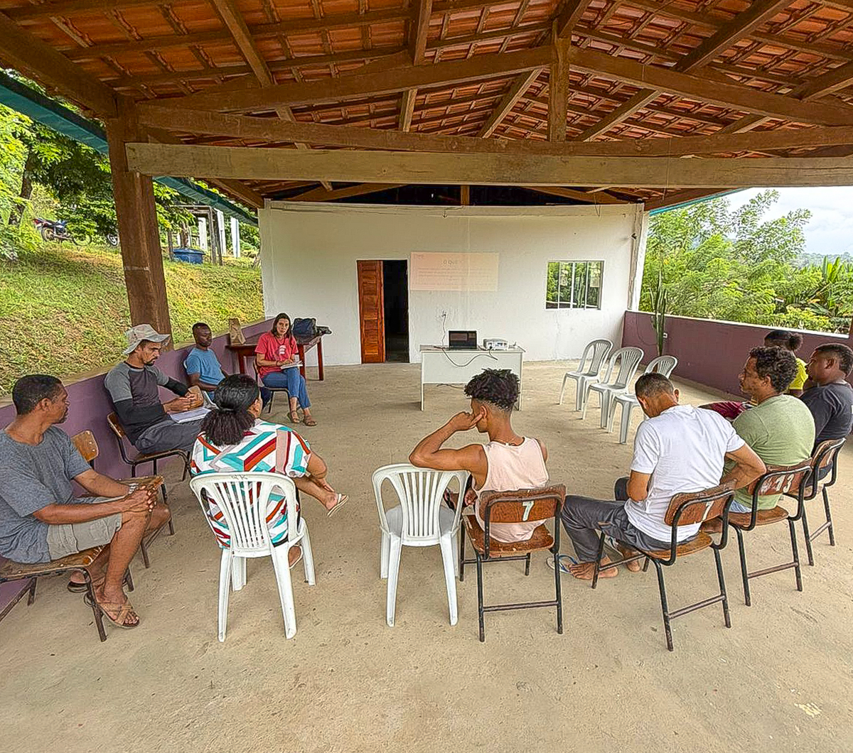 As primeiras reuniões aconteceram nos Assentamentos Dandara dos Palmares (Camamu, BA), Dois Riachões e São João (Ibirapitanga, BA) e no Assentamento Demétrio Costa (Ilhéus, Ba). As próximas comunidades a se reunirem com a equipe são os Assentamentos Terra Vista (Arataca, BA) e Terra de Santa Cruz (Santa Luzia, BA).